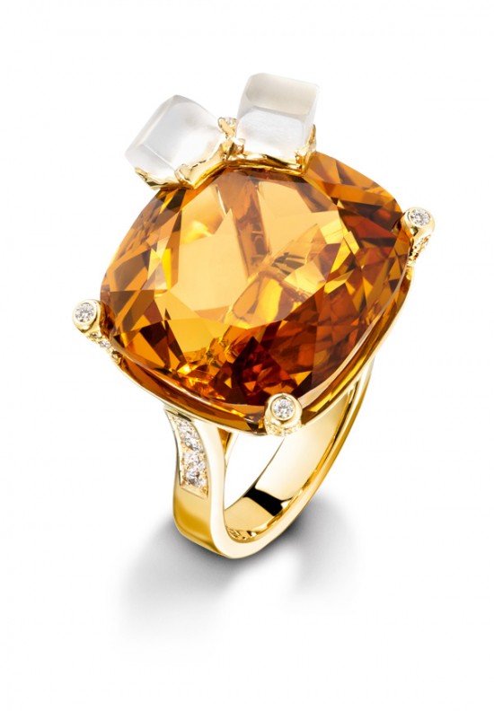 Cribs between the various faux flora, glittering 18-white pieces of gold under the display lights up. A miniature set diamond-encrusted bird in a ring, apparently ready to dip its beak into a cushion cut ruble little gem. Other birds sitting on a white gold spray of diamonds and pearls, while a floral ring flourished diamonds, emeralds or pink sapphires. One necklace has 289 diamonds seem to represent the drops of dew caught in a transparent network. Another sprouted buds of pink tourmaline and pink sapphire, reminders that spring is finally.